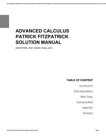 Download Advanced Calculus Patrick Fitzpatrick Solution Manual Library Binding